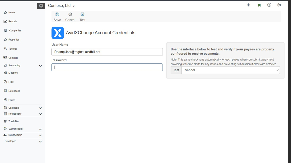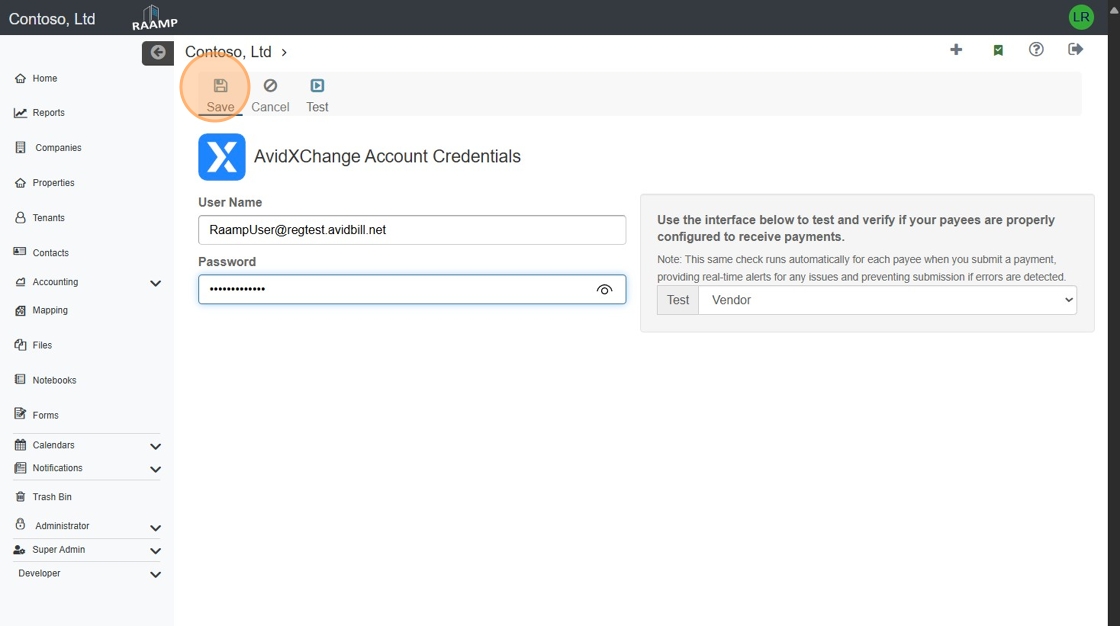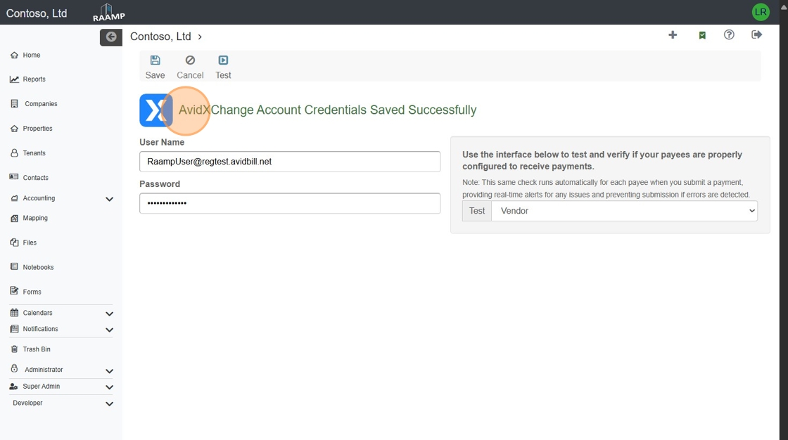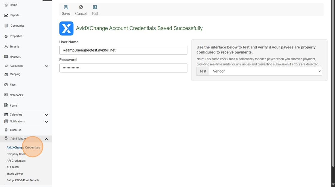 5. Click "AvidXChange Account Credentials Saved Successfully"